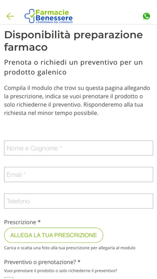 - Richiesta e prenotazione prodotti e preparazioni galeniche, anche mediante l'invio di immagini