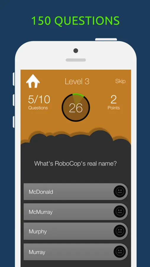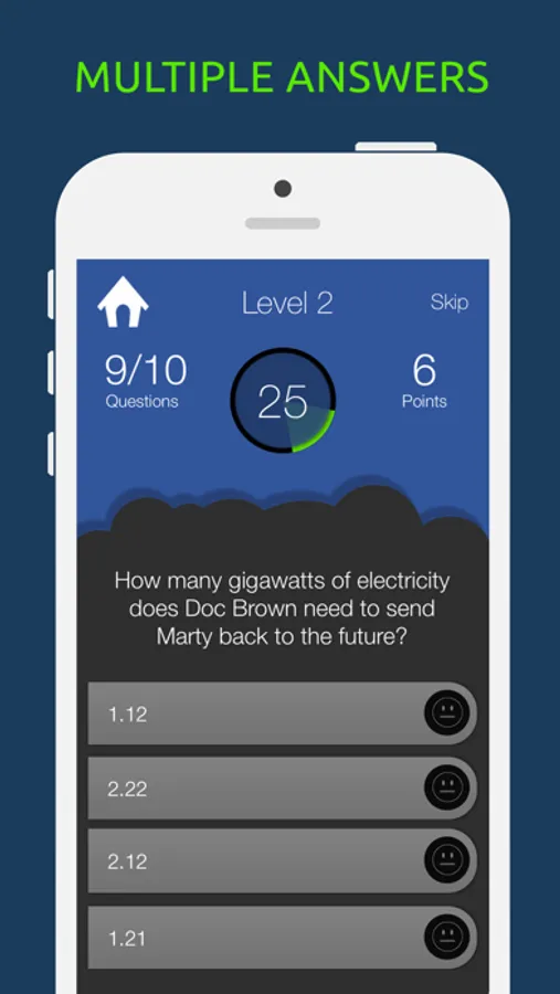 Trivia questions and answers are shuffled randomly every time you play. You can skip a question, if you don't know the answer. Play multiplayer one on one with your friends!
