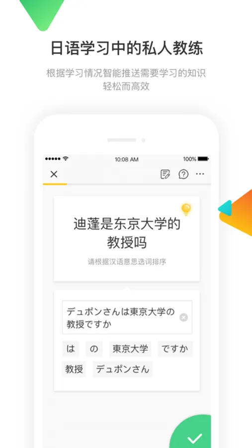 ● 日语学习中的私人教练,根据学习情况智能推送需要学习的知识,轻松而高效