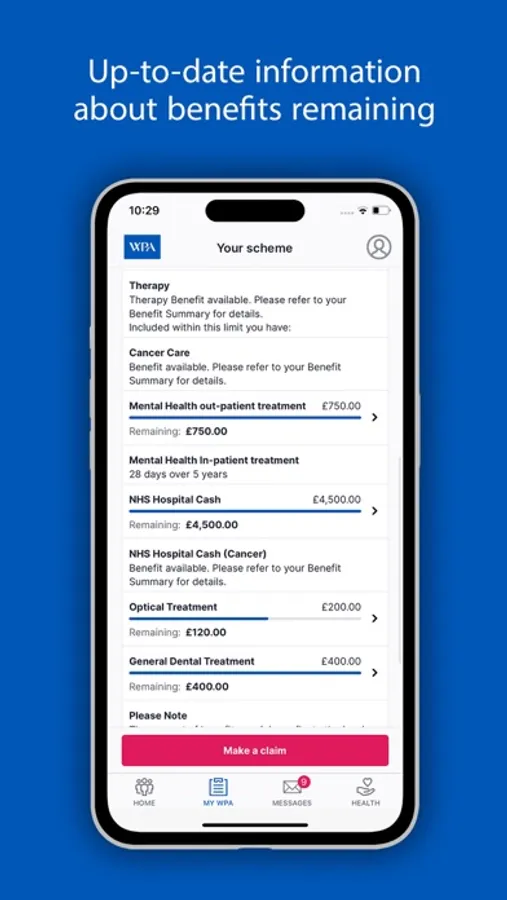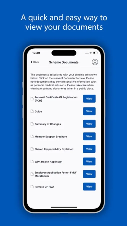 We believe that our policies should be easy to understand and easy to use wherever you are which is why WPA Health is designed with customers in mind. Features include: