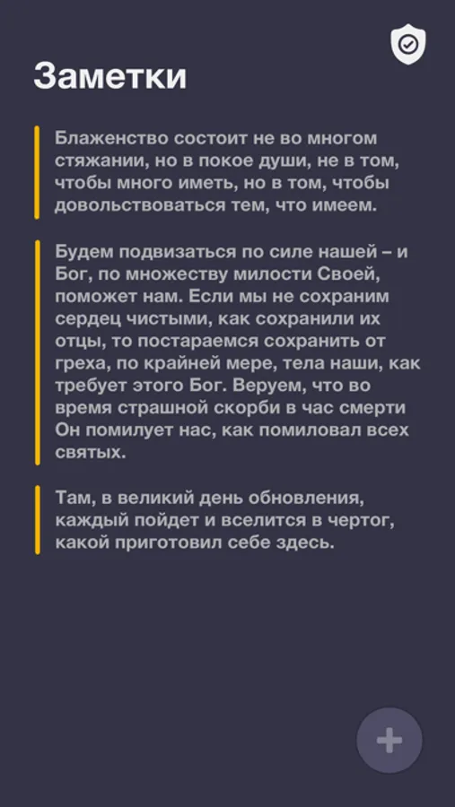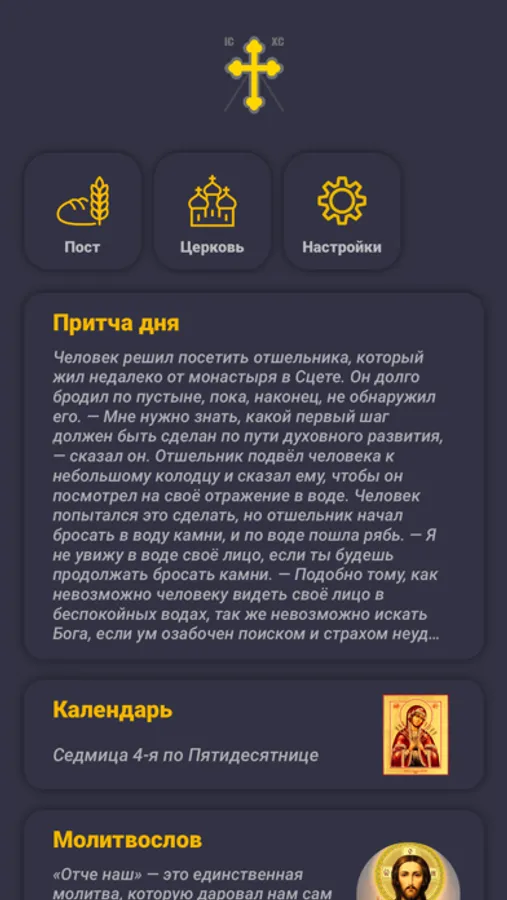 Ведётся упорная работа по созданию качественного и удобного приложения для всех православных, которое не только соответсвует всем техническим параметрам качества, таким как: быстрая скорость работы, минимальный расход батареи и сохранение памяти Вашего устройства, но так же и дизайна, в котором подобраны специальные оттенки для снижения нагрузки на Ваши глаза.