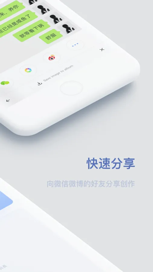 可以将合成的图片快捷分享到微博,微信好友和朋友圈。