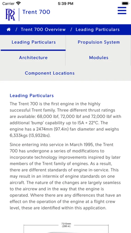 The app provides an opportunity to learn about the key modules and components of the Trent 700 through the interactive ‘Engine Overview’ feature and understand how they work together to deliver a range of ‘Engine Systems’.
