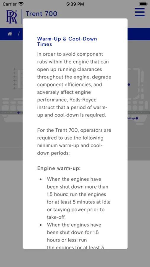 This Trent 700 Pilot Guide app is provided free of charge for Rolls-Royce Trent 700 customers. To access the content of the app you will need a Rolls-Royce supplied log in that you will need to verify during your first use of the app. If you are not an approved Rolls-Royce Trent 700 customer then you will be unable to access the app content.