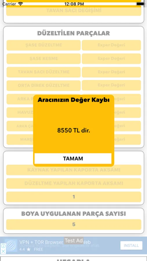 Araç Değer Kaybı Mobil Uygulaması, kazaya karışan aracınız için sigorta şirketinden ya da karşı tarafdan tahmini olarak ne kadar değer kaybı tazminatı talebinde bulunabileceğniz konusunda hesaplama yaparak size bilgi verir.