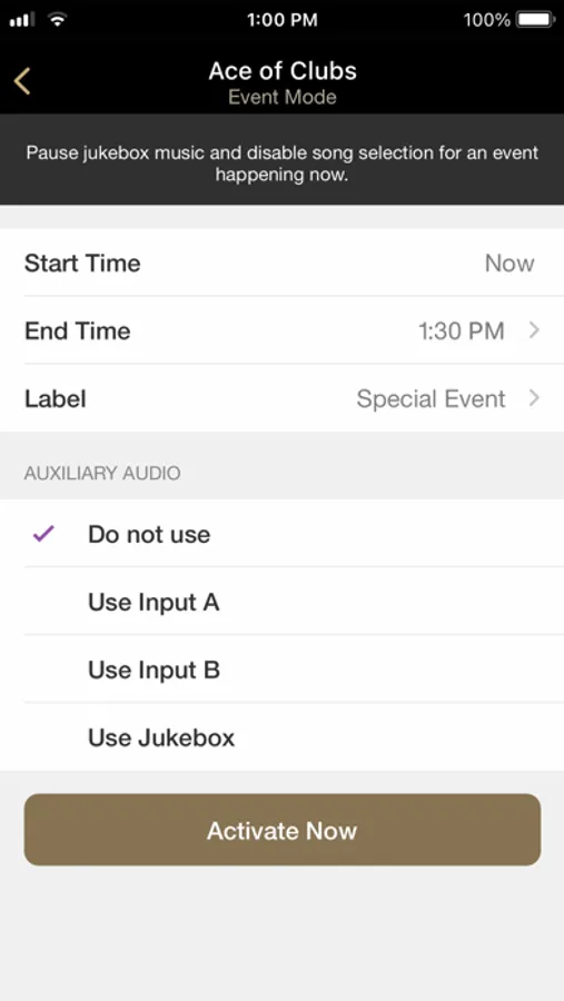 - Event Mode – Temporarily halt music playback and prevent patrons from making paid selections at the jukebox or via the AMI Music app for a set amount of time.