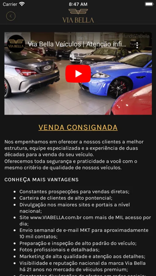 Desde 1997 a Via Bella seleciona para você os melhores veículos premium dentro do mais alto padrão de qualidade, proporcionando através de informações claras, objetivas e de alta qualidade toda a confiança necessária para negócios bem sucedidos.