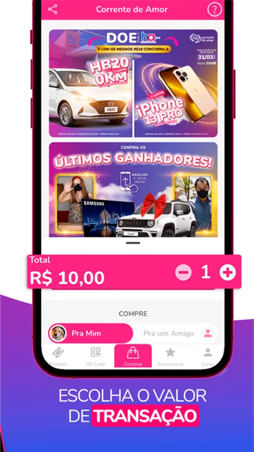 Através de campanhas sazonais os doadores realizam uma doação direto no aplicativo, contribuindo em tratamentos, equipamentos, atendimentos e demais necessidades do Hospital de Amor, e ainda tem a chance de ganhar prêmios incríveis.