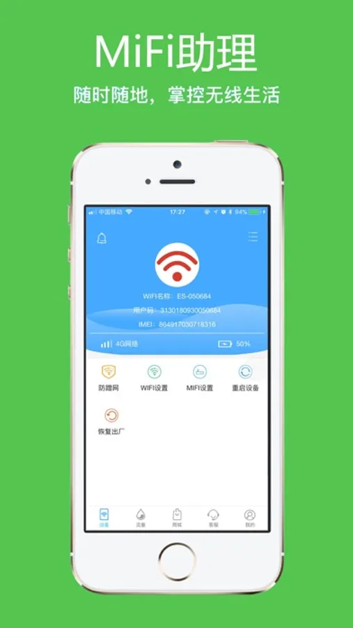 MiFi 助手是一款集快速实名认证、设备管理、流量充值、流量查询、精品购物、客服支持于一体的专用功能性软件,可以管理包括UFi、MiFi等多款无线路由器