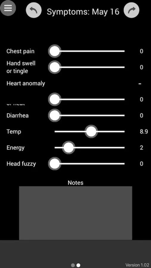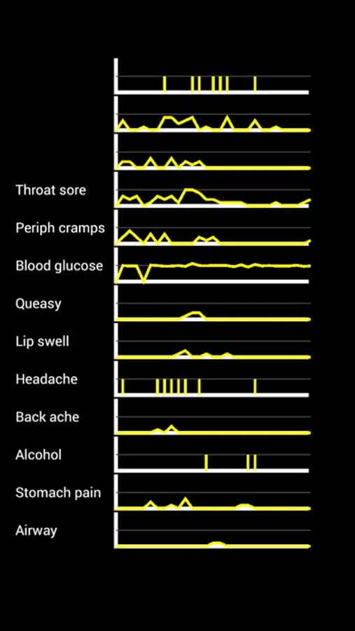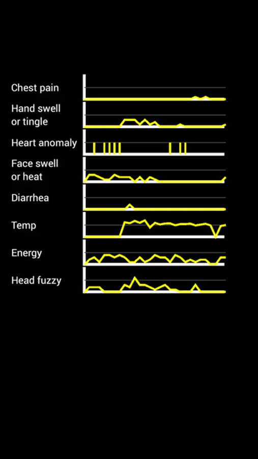 The goal of this app is to make journal entries of health symptoms as quick and efficient as possible. There are many apps to record symptoms, but I created this because all of them took too much of my time. This takes me seconds per day for 21 symptoms. My allergist was pleased by the insight from the patterns in the graphs.