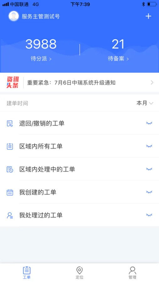 “中瑞服务台”是轮子科技为汽车硬件的安装、检修、拆机服务自动化、信息化开发的工单系统。支持客户API推送工单、人工建单、客服派单、技术人员接单、提交服务信息、推送流程消息,提高服务时效、服务质量,及时而完善地处理客户需求。