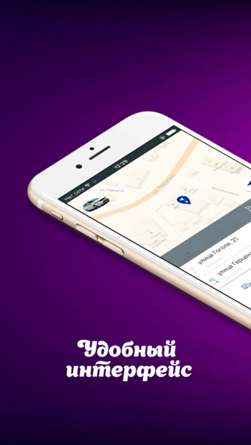 В начале работы с приложением Вы можете указать город подачи. Введите адрес, либо программа сама определит Ваше местоположение. Нужно лишь указать точку назначения.