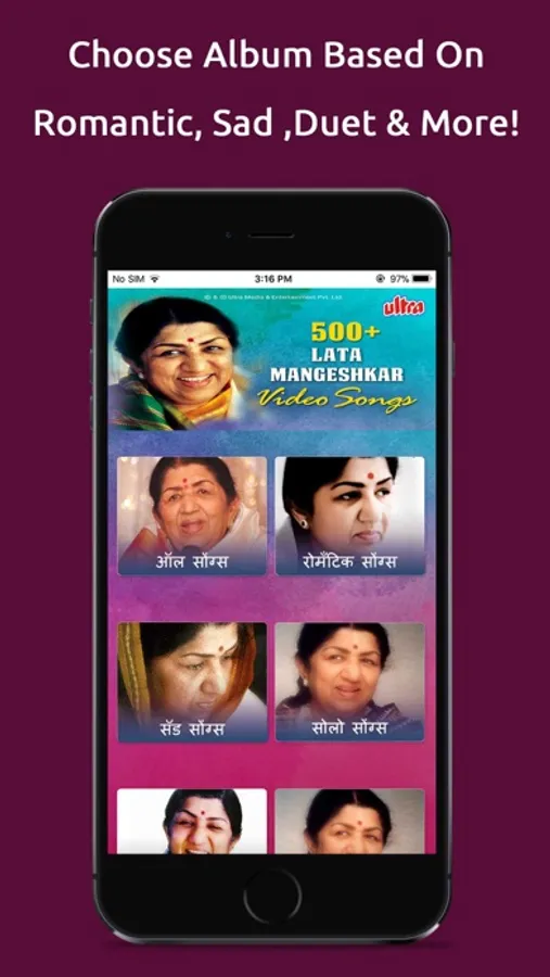 1. All Songs – App features all-time favourite Song Videos from various films sung by Lata Mangeshkar.
