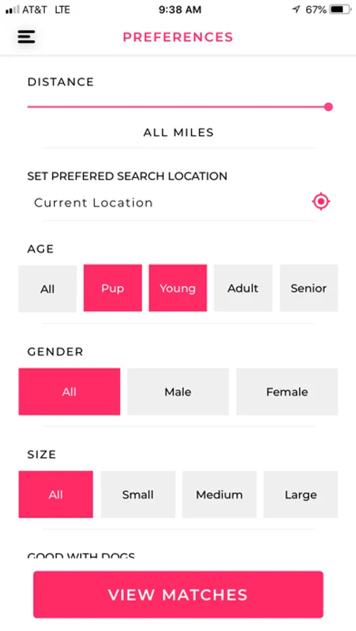 Dating is ruff! We make finding your dream dog easy! Create a profile, set your preferences, and complete a one-time, universal adoption form. Swipe right to favorite a dog or left to pass. You can narrow down your top favorite dogs and send your connection to their rescue.