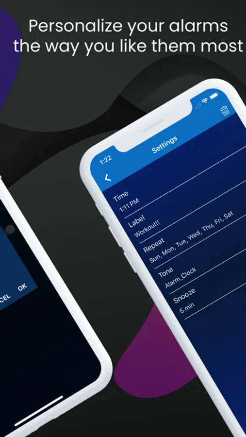 ▶ Set a Custom label that will display when the app plays alarm in alarm clock