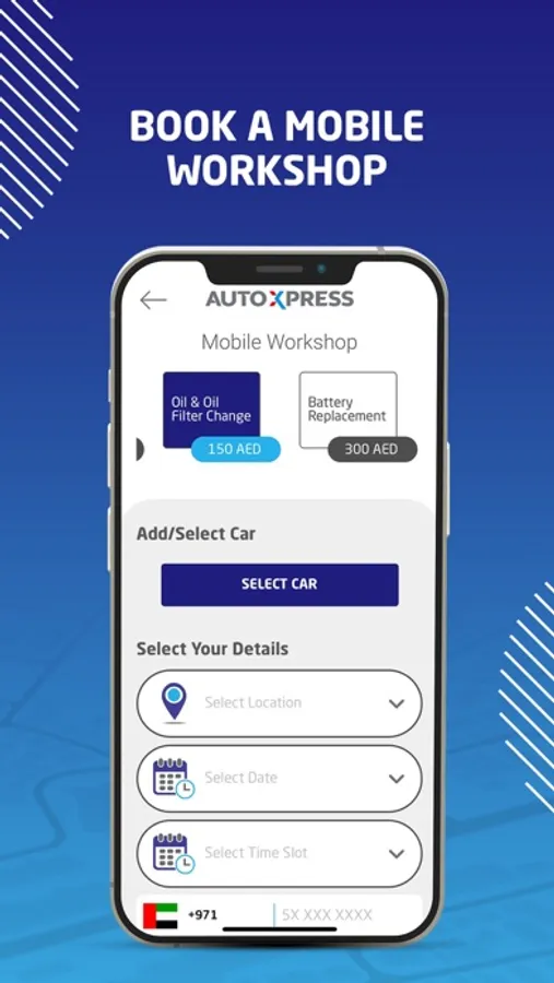 4. AutoXpress Service & maintenance: Pre-book any automotive service job which can be carried in any of the 2 Service Centre locations in Sharjah. Services Available (Mechanical work, Electrical work, Painting & Decal, and body repair).