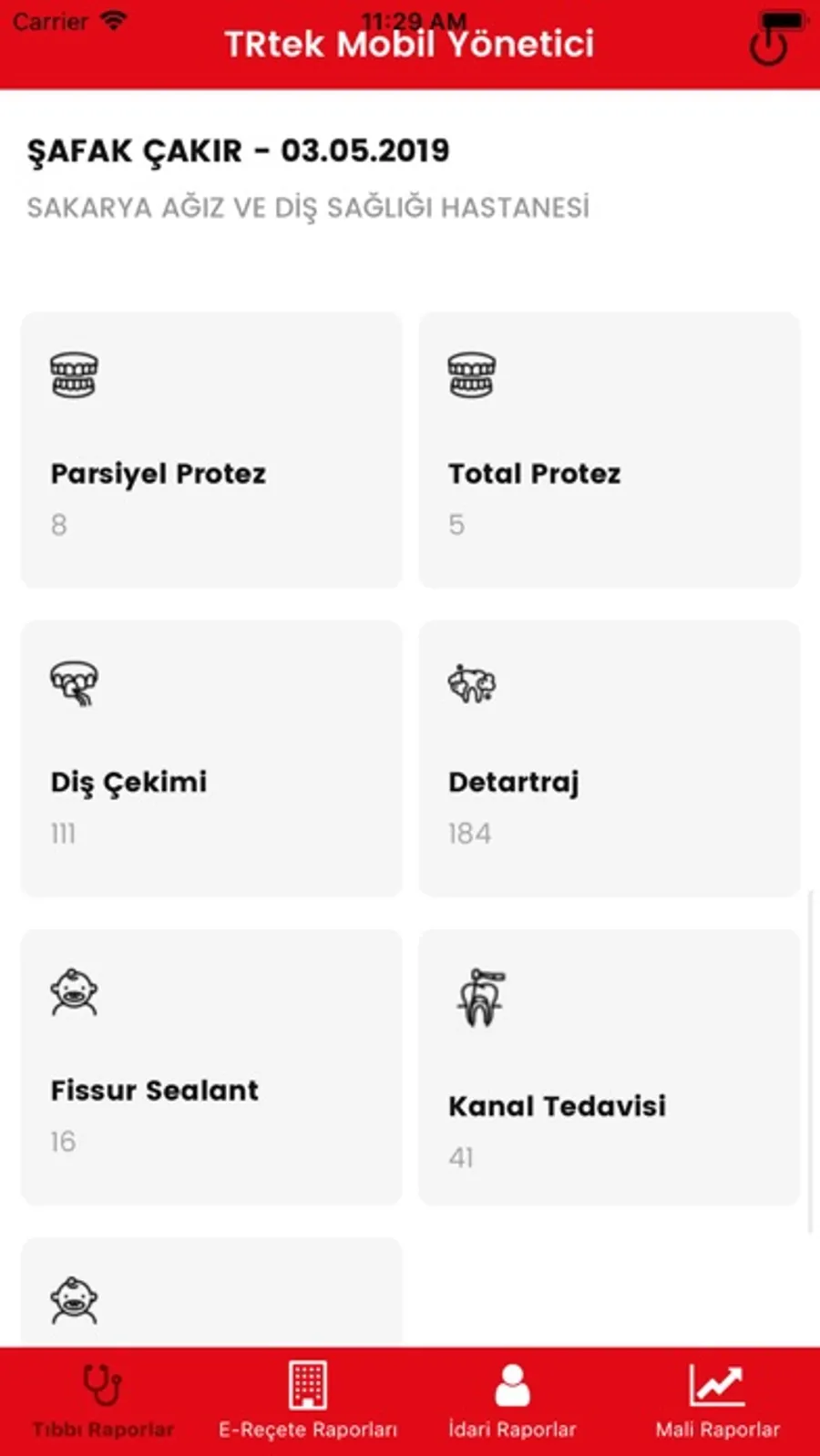 • Diş Çekim Sayısı ve Hekim Bazlı Hasta Sayısı