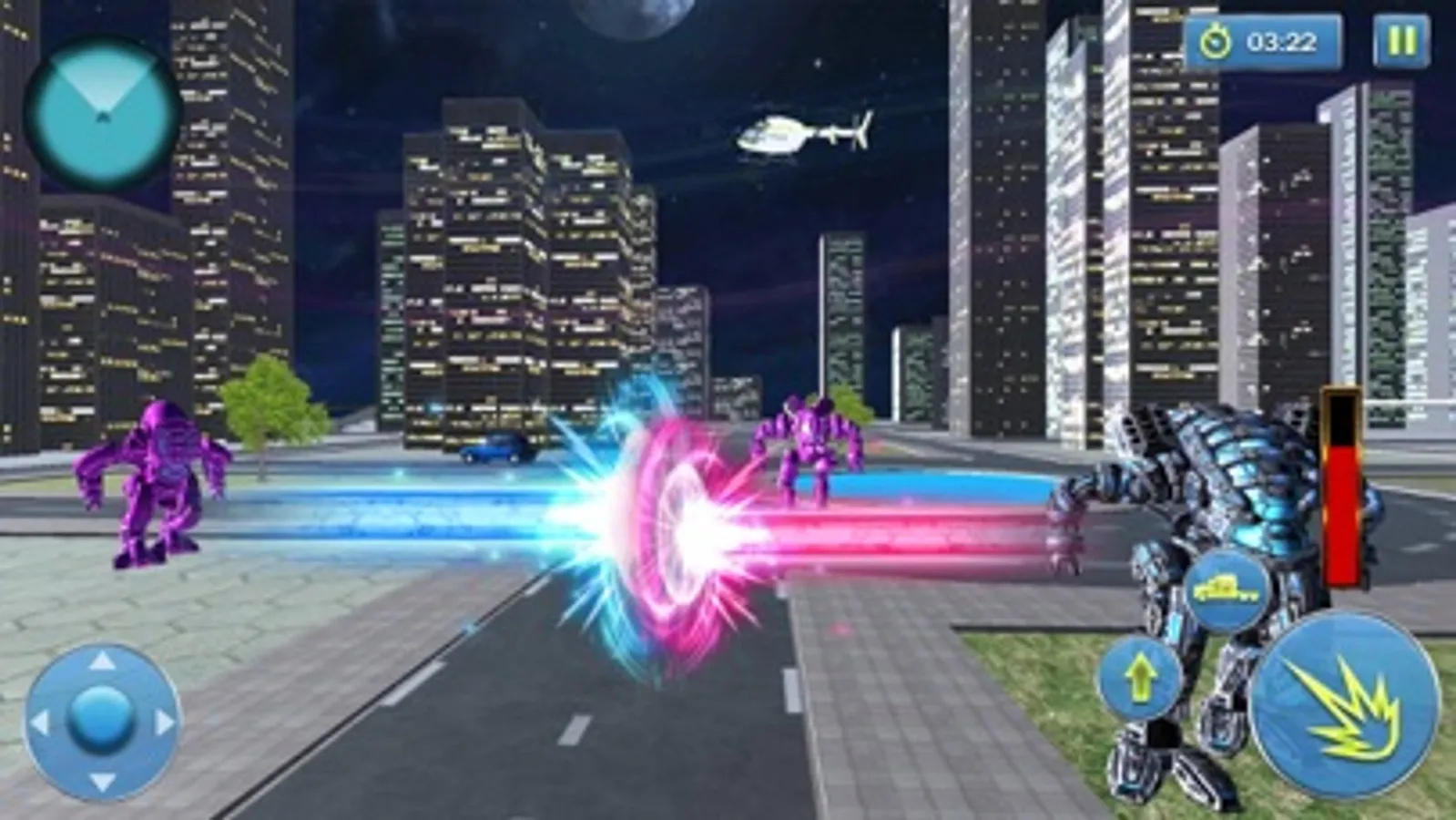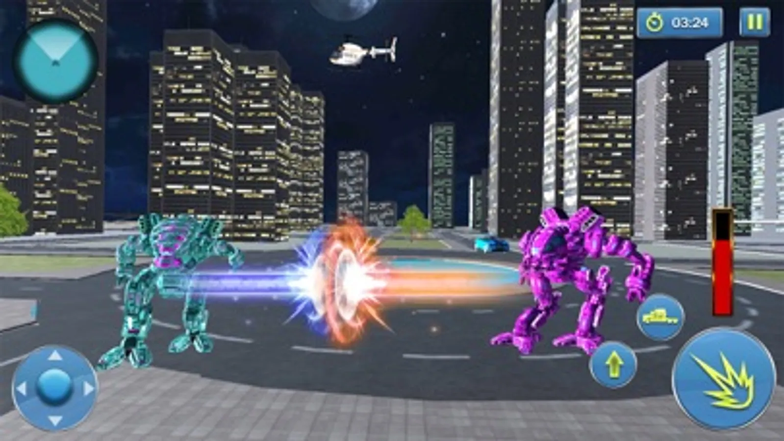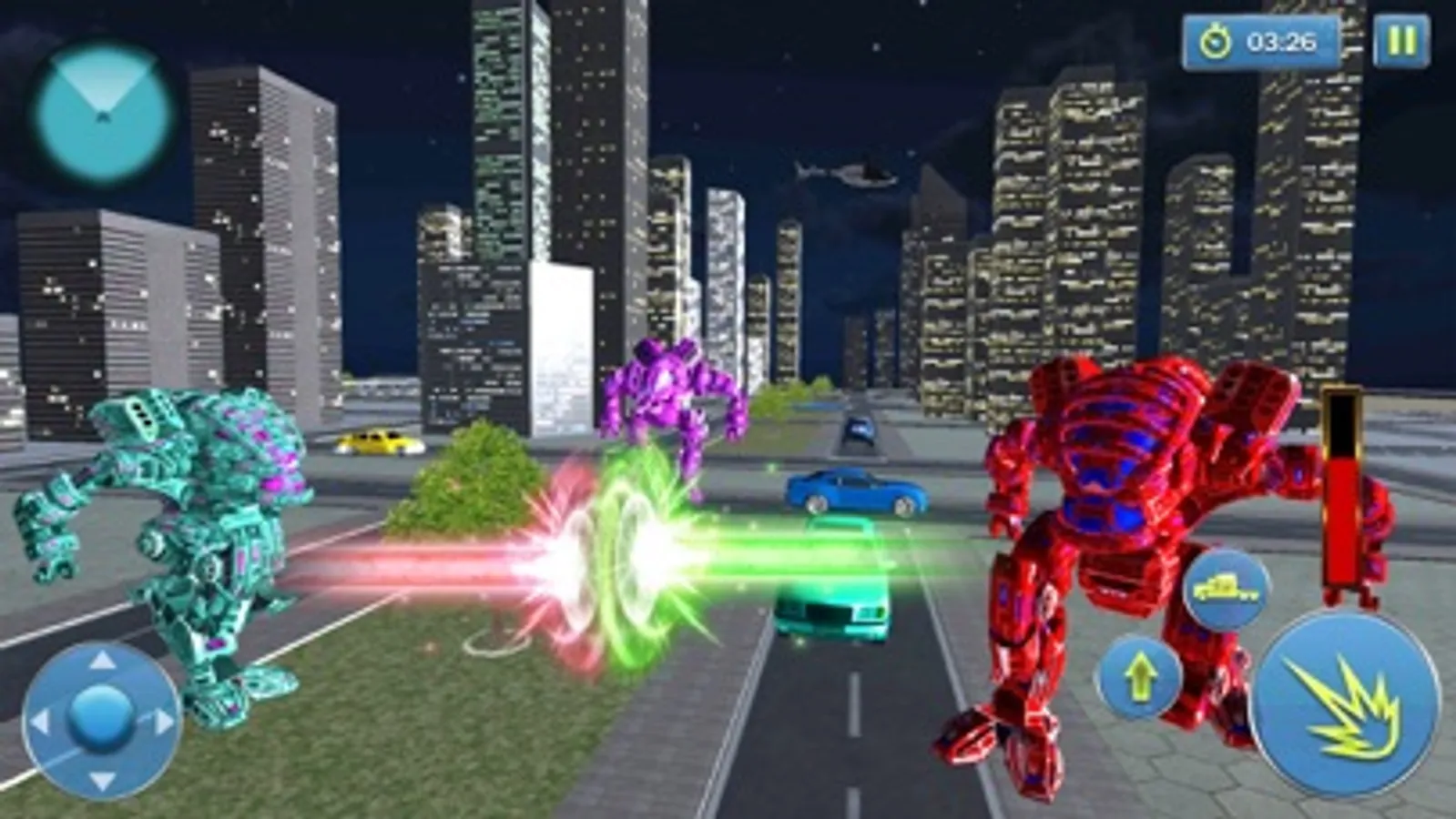 Enjoy new Robot Car War Transform Fight & transforming Robot battleground with mech warrior in the rescue mission of real robot transformation games with police robot cop car Autobots. This muscle Robot Car War Transform Fight a with features of Robot Car War Transform Fight giving a rescue mission of futuristic robot transformation games and war robot animal games. Futuristic robot battle is not a new thing in real robot car transformation games where battle robots are always ready for crime city battle. It is a futuristic blend of Robot Car War Transform Fight and car robot fighting games with the ability of robot car transformation. Your responsibility in the game is to stop evil robots in epic robot battle simulator and protects the David and his friend from evil robots. In this American muscle car robot shooting real robot transforming game and evil robots are destroying the city. As a Superhero, you have to stop the evil robot corps with your amazing powers. As American muscle car robot, you have to defeat the robots and stop their recruitment and save the David and his friend in this Robot Car War Transform Fight. You have to prove yourself a real Steel-man in robot battle simulator.