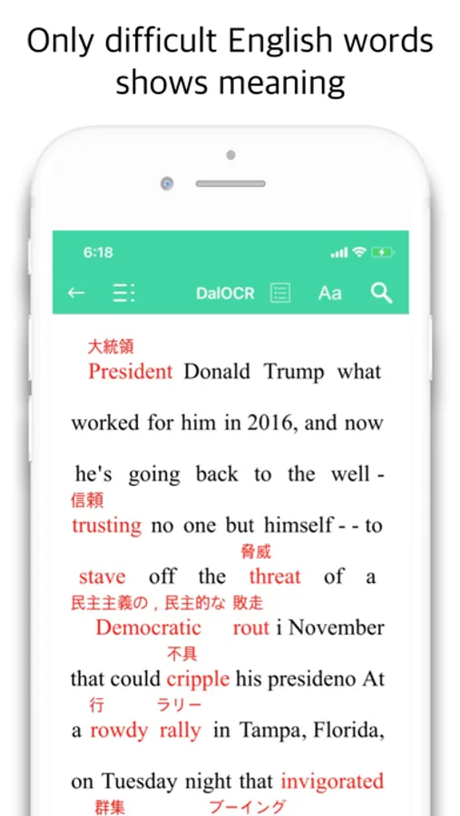 DalVoca shows you the meaning of text in English/Chinese/Japanese when you take a photo.