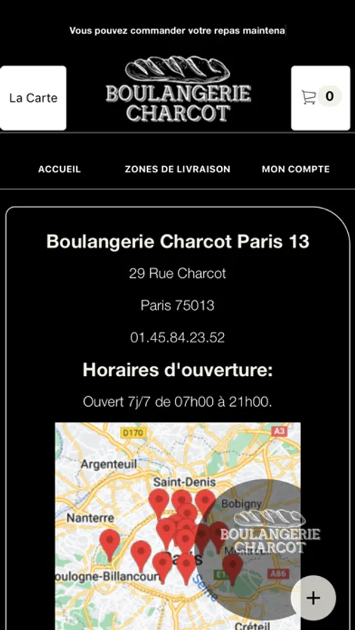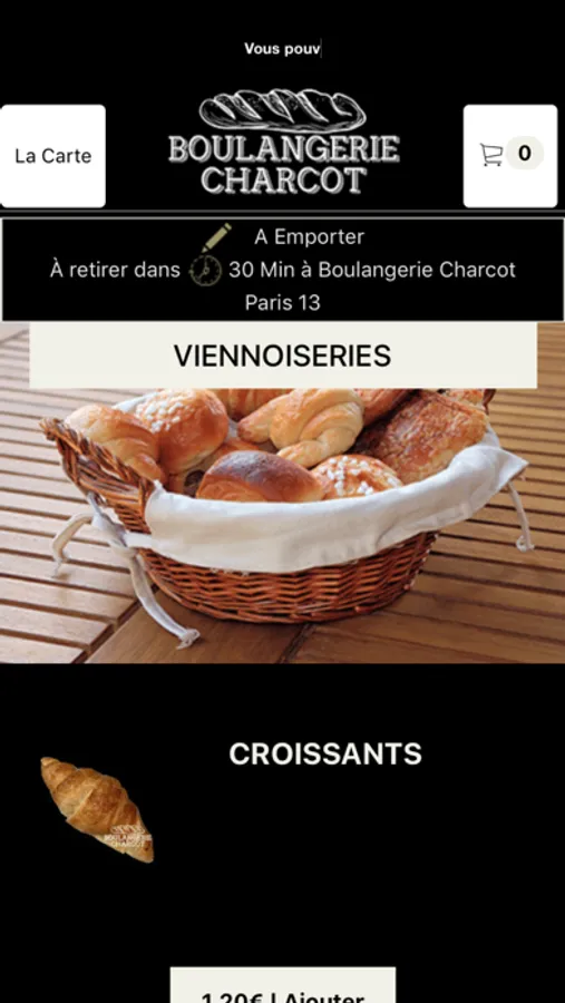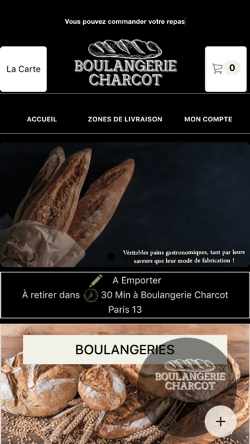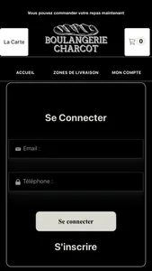 L'application Boulangerie Charcot vous permet de commander en ligne ou par téléphone via votre application. Vous pouvez consulter notre carte et choisir vos produits.