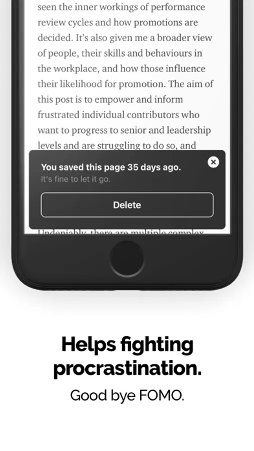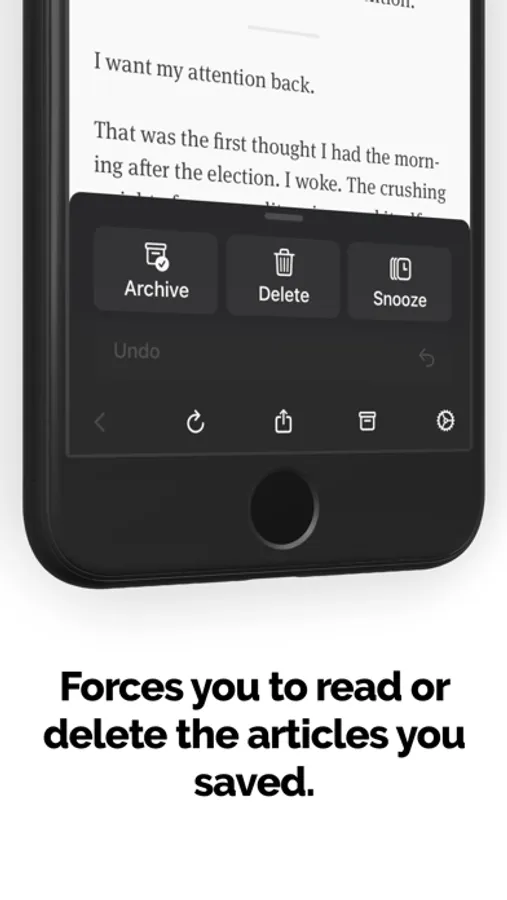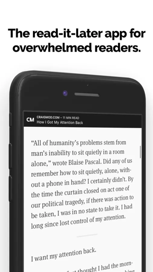 “This is INCREDIBLE! I've had similar issues with Pocket/Instapaper/Safari/Etc. in the past, and this is exactly what I've been looking for. The UX is super well done. It jumps you in and gets you started right away, and keeps you focused on the task.”