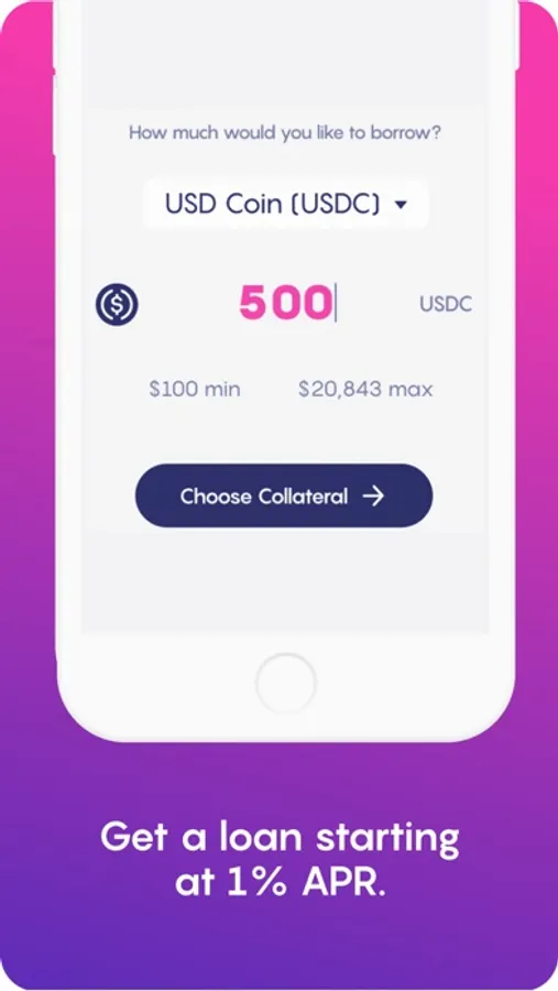 ● Borrow against your crypto with loans starting at 0.1% APR.