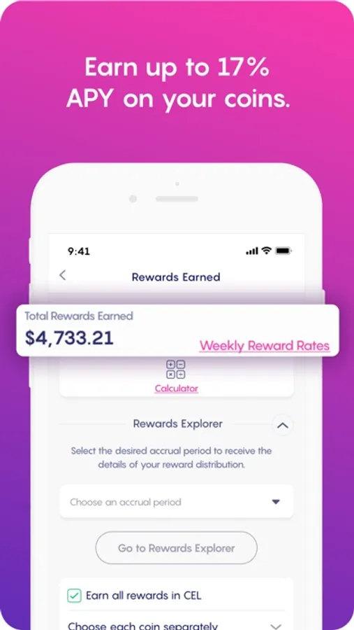 Don’t let your coins set idle. Transfer your assets to Celsius (or buy directly in-app) to start earning compounding crypto rewards. With Celsius, you can earn competitive yield on 40+ assets, paid weekly.