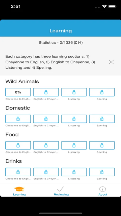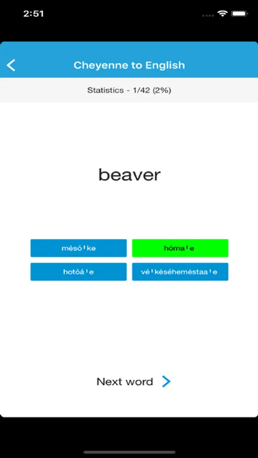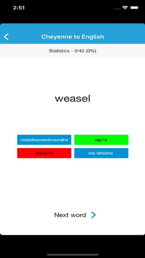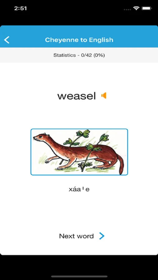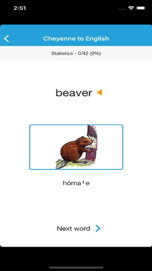 Build your Cheyenne vocabulary with this FREE vocabulary game for your iPhone or iPad. Quiz yourself every day to learn different categories – wild animals, food, drinks, and more! The app includes: