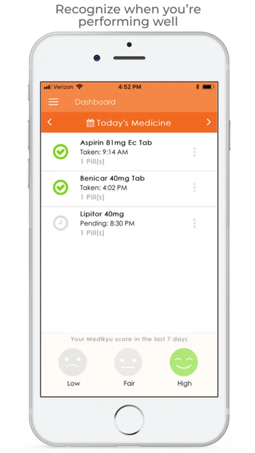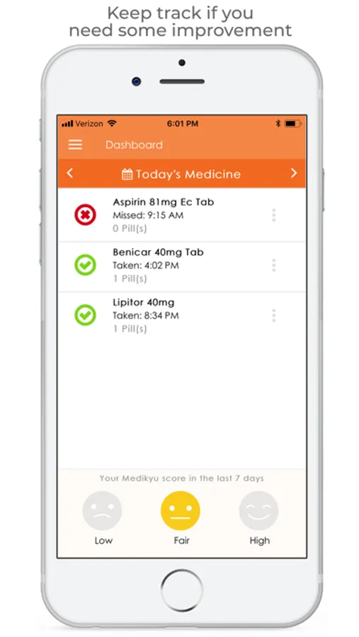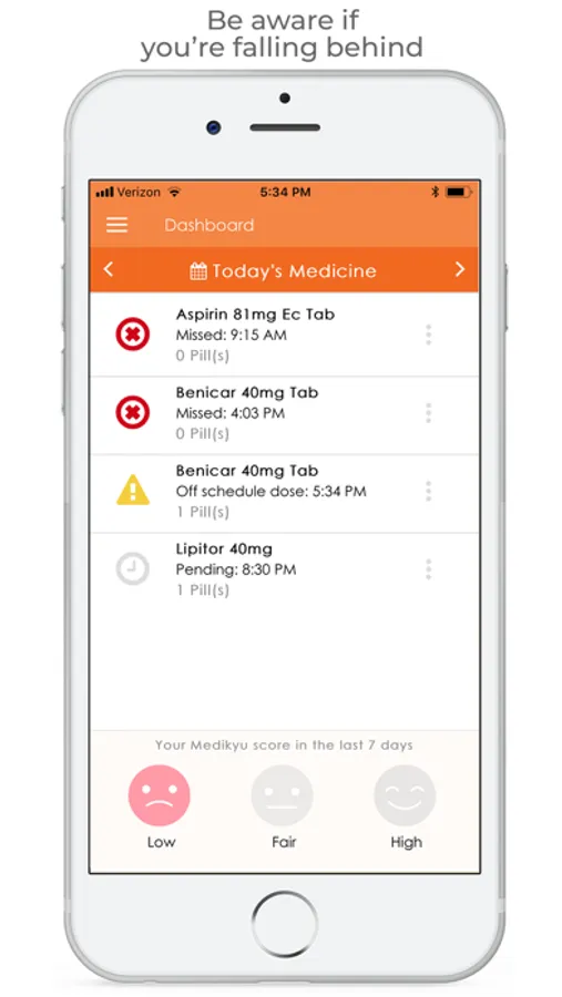 The Beacon of Care™. Medikyu tracks doses and reminds you when it’s time to take your medication, supplements, or vitamins. Put yourself at ease by staying on top of not only your own, but your loved ones’ doses too. Medikyu app reminds family members or friends when to take their medicine, and lets you know if they miss their dose.