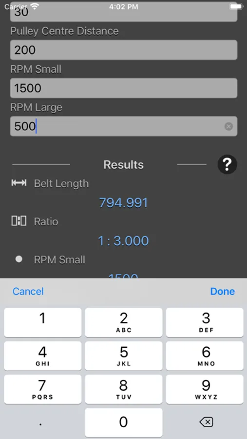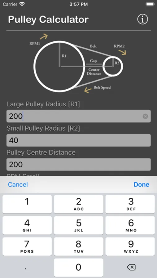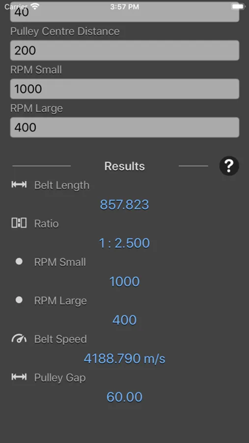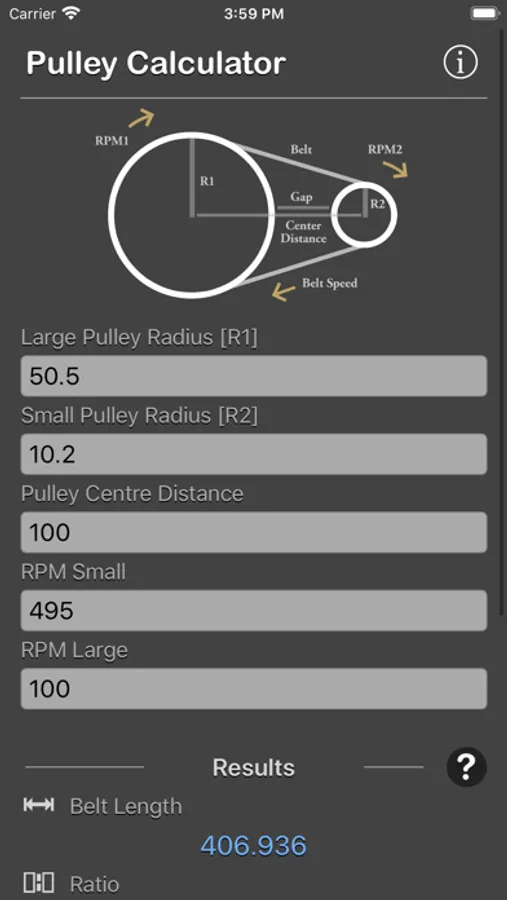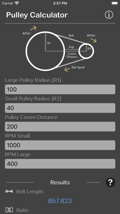 Pulley Calculator is a engineering calculator to calculate Belt Length, Ratio, RPM, Belt Speed, Pulley Gap.