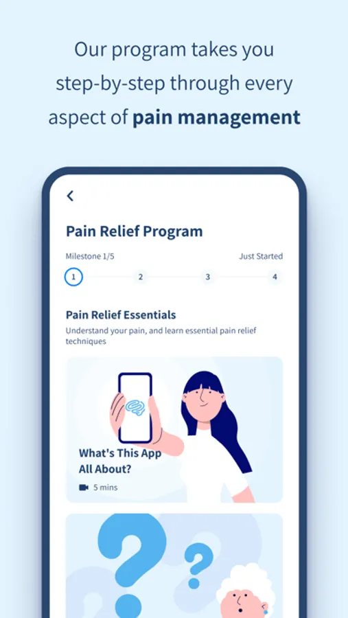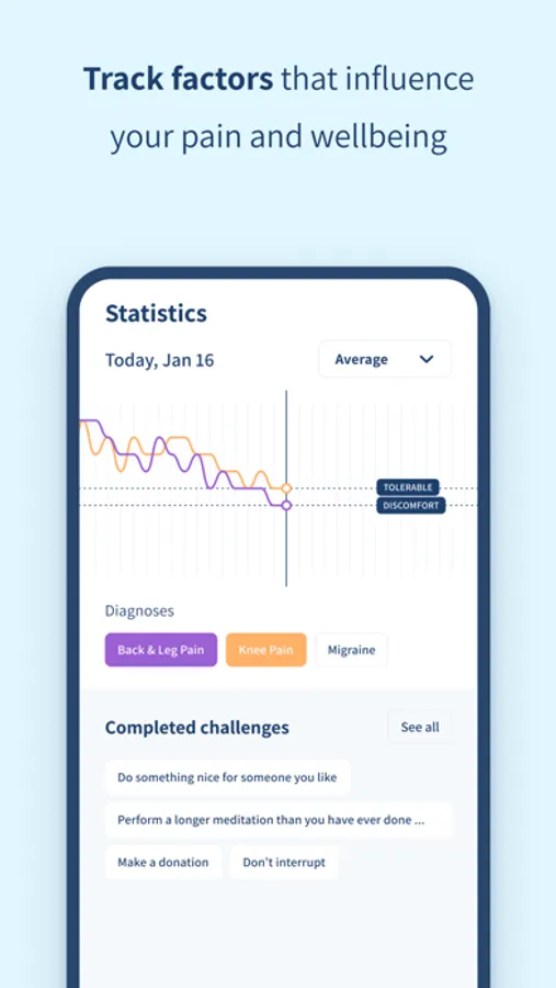 Your personal pain therapist will take you on your journey to understanding why you feel pain, and work to break the pain cycle. You can track how your pain develops over time, and focus on the pain relief techniques that work for you.