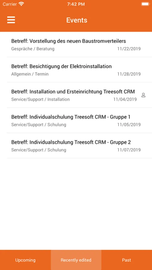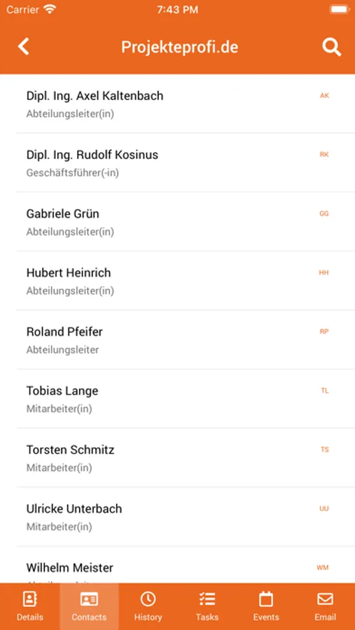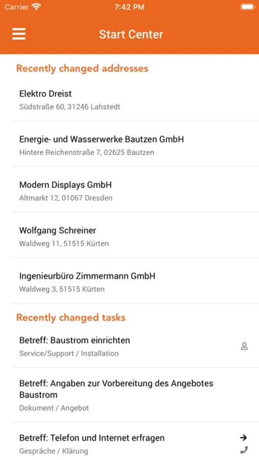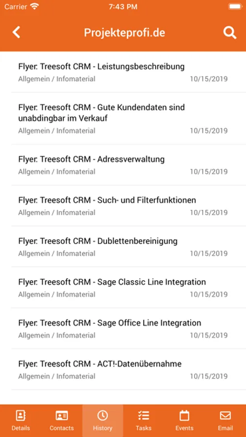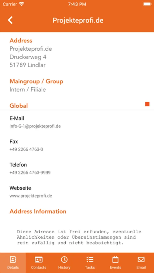 In addition to contact data (addresses and contact persons), appointments and tasks as well as history entries and e-mails can also be viewed.