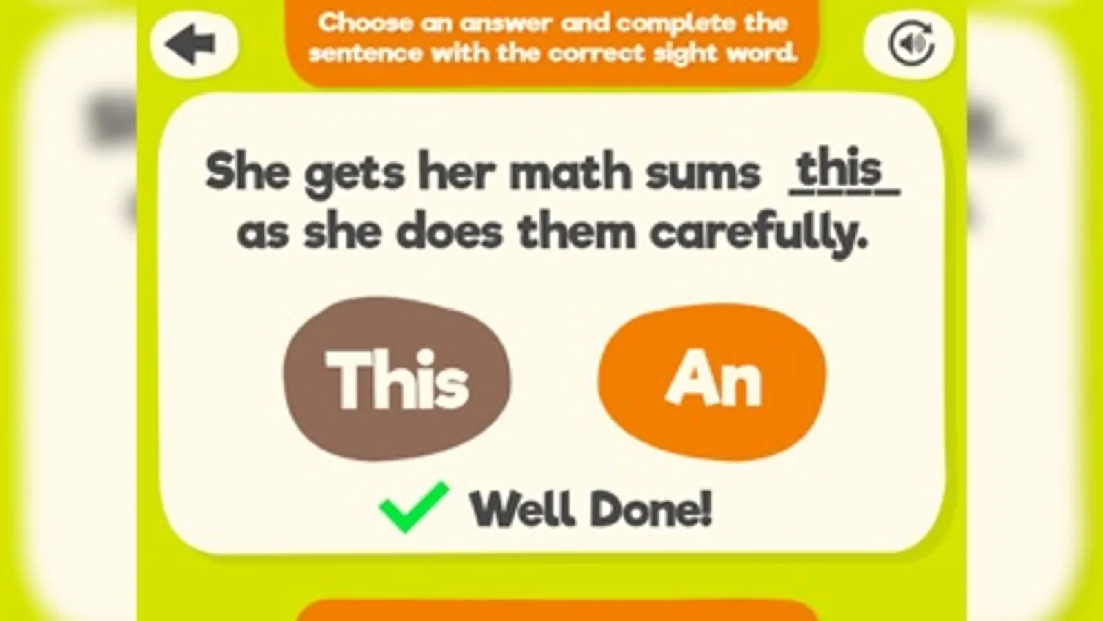 So we have provided exercises for sight words in which user has to fill in the right sight word to complete the sentence, in 2nd exercise, a user has to listen to sight word and type it from the given letters.