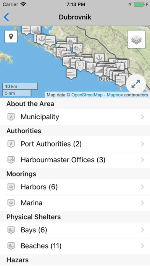 SailPilot includes the Croatian Ports Guide, with Port Authorities, Provisions (Fuel, Supermarket, Bakeries), Yacht Services (Repairs) and Tourism Services (Restaurants, Cafe, Bars, Tourist Attractions, ATM, Pharmacies, Hospitals, Airports).