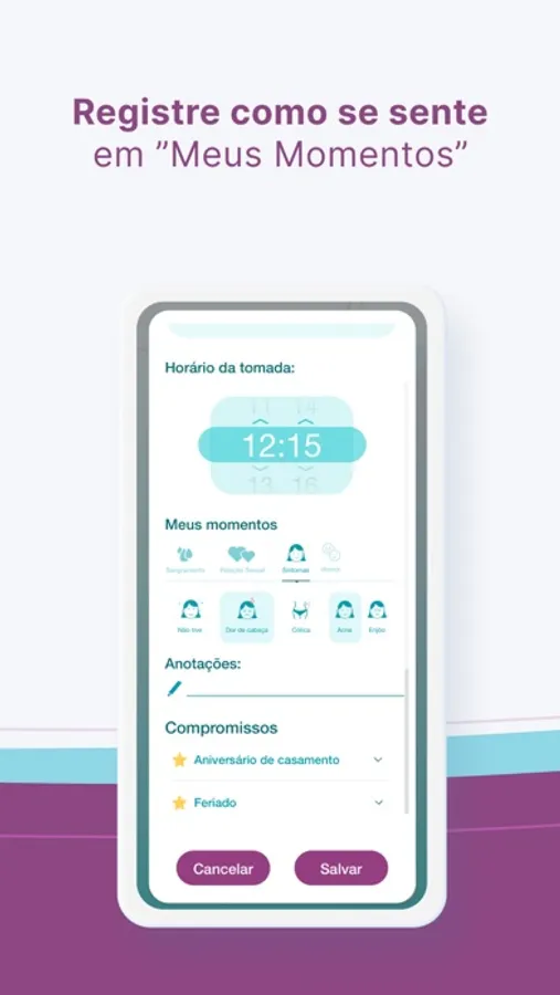 • Ativar e configurar alertas de aviso do horário de tomada.