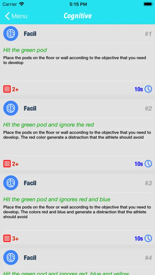 This application contains more than 40 pre-configured workouts for use with the LedTrainer FIT pods.