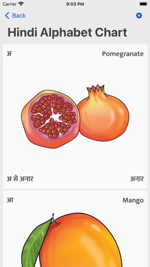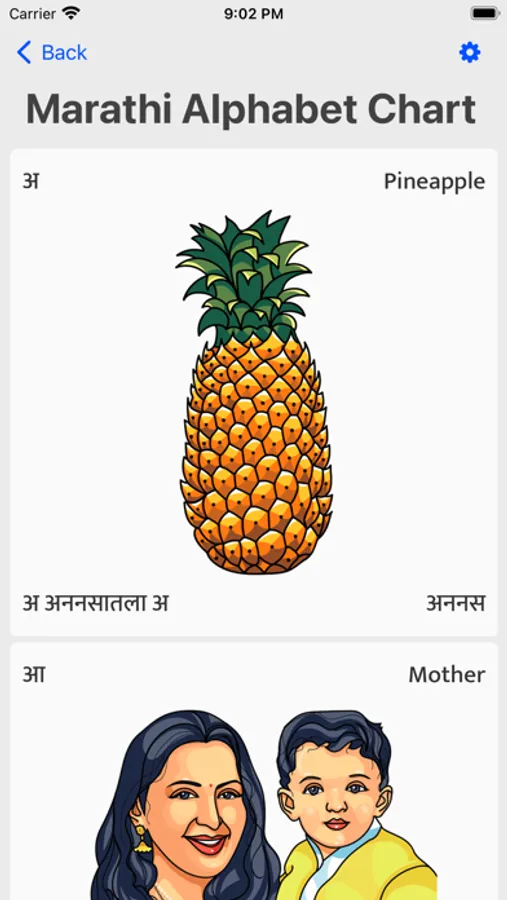 1. Intuitive visuals and illustrations help your children identify the alphabet and relate the alphabet to visuals such as animals, fruits, vegetables, gods, and humans.
