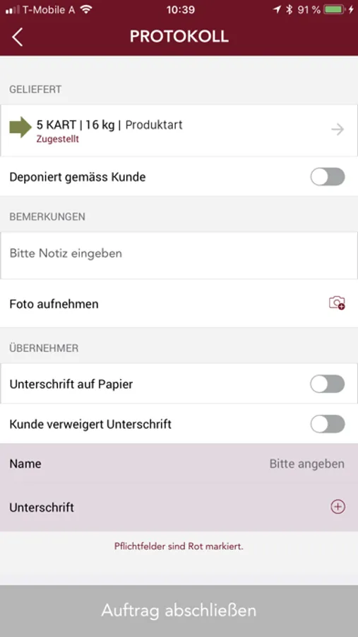 Galliker PoD App für externe Fremdfahrer