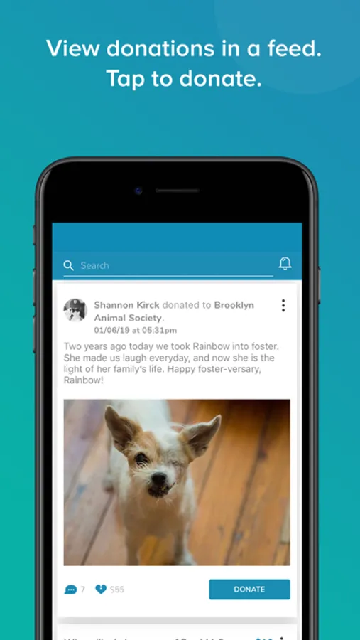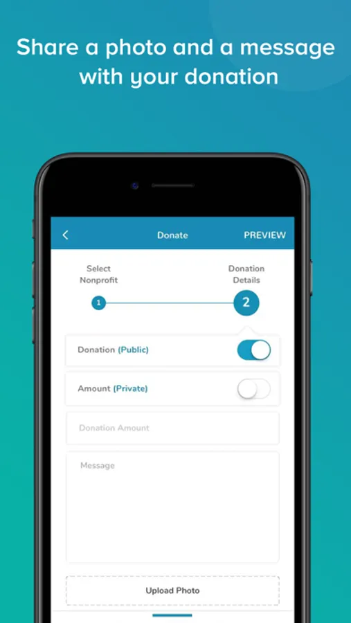 Take credit for your donation and share that you care! Include an inspiring picture and message along with your donation. Your friends will see your donation in a feed and will have an opportunity to donate, comment, and learn about your charity. And for those times when you don’t want to share, one simple tap will make your donation private.