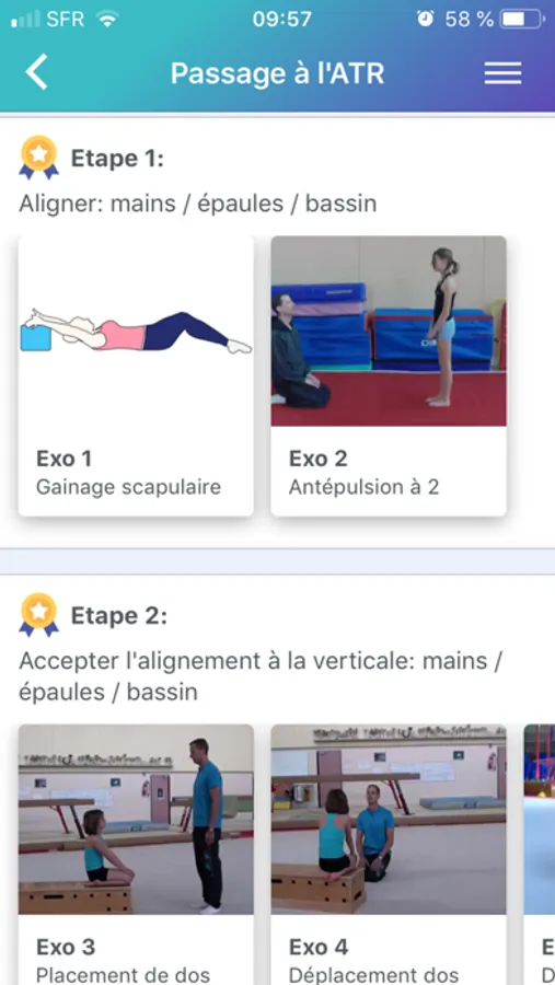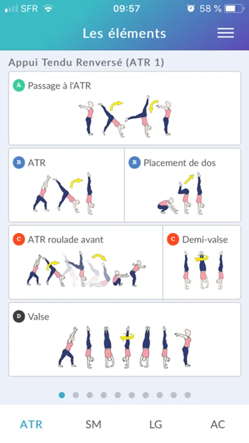 Gymtop est l'application de référence pour l'enseignement de la gymnastique au sol. L'application couvre l'ensemble du programme fille et garçon collège/lycée au travers de 91 éléments et plus de 450 exercices.