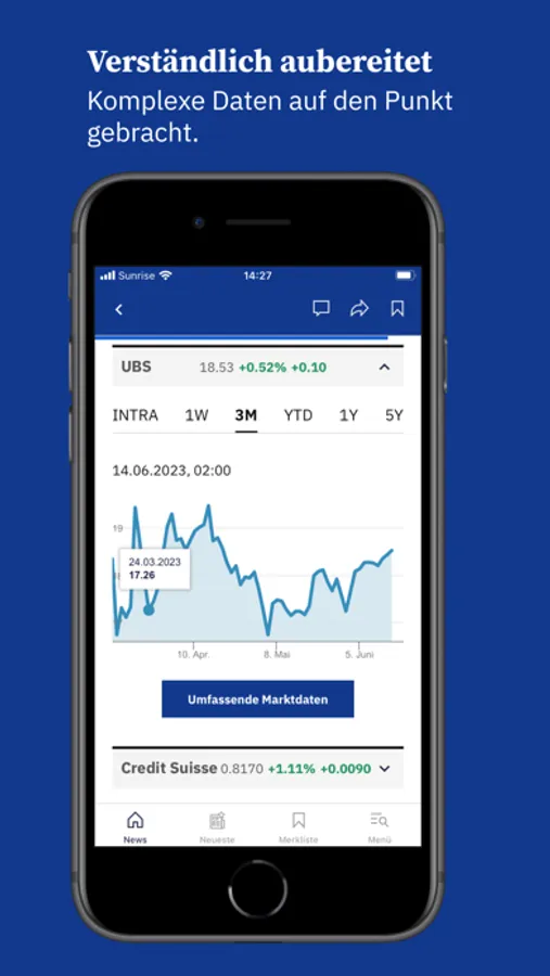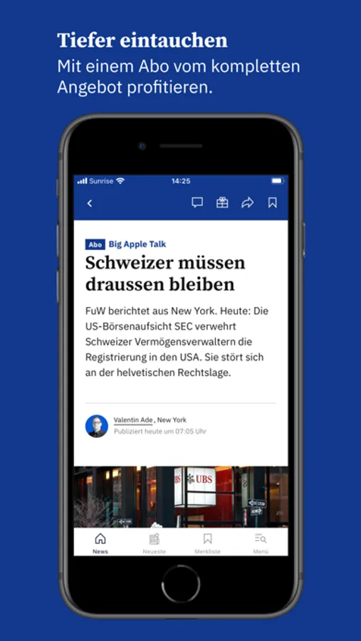 In unserer App finden Sie neben aktuellen Finanznachrichten auch fundierte Kommentare und Hintergrundberichte aus der Schweiz und der Welt sowie aktuelle Kurse der nationalen und internationalen Finanzmärkte.