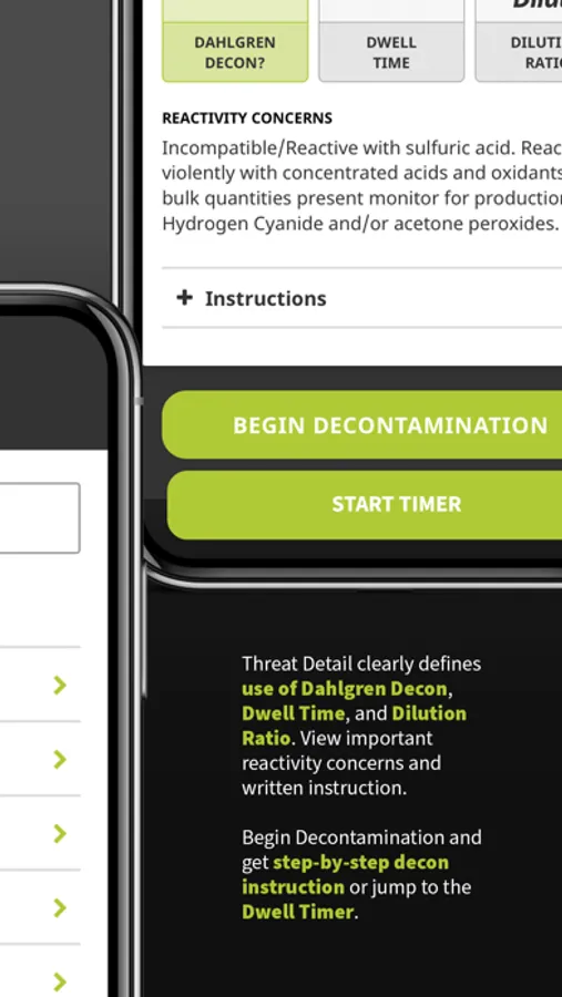 Using the same classic Threat Index, quickly and efficiently determine proper decontamination methods for hundreds of known and emerging threats and execute your mission flawlessly utilizing pictorial instructions and in-app dwell timer.