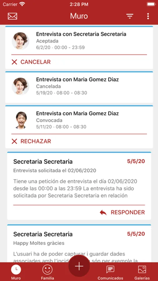 Esta aplicación permite una comunicación fluida entre la familia y el centro. Pudiendo consultar las calificaciones, recibos, comunicados, galerias, entrevistas, horarios, etc.