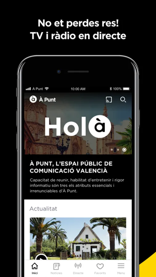 Ací tens al teu abast les emissions en directe de ràdio i televisió, així com tots els continguts de vídeo i podcast d'À Punt a la carta.