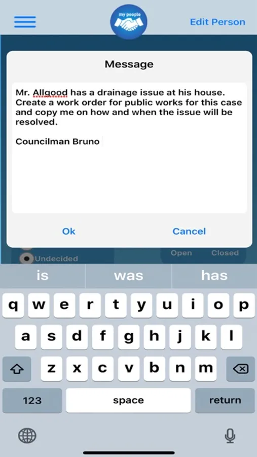 My People 123 helps elected officials and their agencies manage constituent services on the go. When an official receives a call, email, or comes in contact with a constituent who has an issue, they can address it and track it. Each elected official’s district database of constituents is unique and private to them and the staff they share it with.