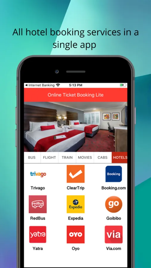 - Hotel room booking consist of Trivago, ClearTrip, Booking.com, RedBus, Expedia, Goibibo, Yatra, Via and Oyo