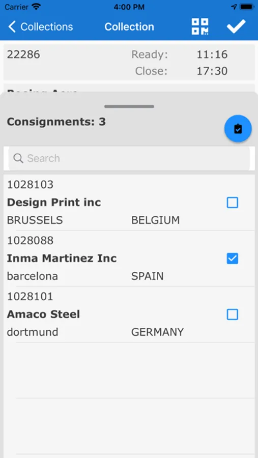 AIMS Despatch allows a driver to receive collection instructions from the transport screen in the AIMS Express system. The driver can accept or reject the collection in order for the despatcher to know that the job has been received okay. Once accepted the driver can drill into the collection to see the consignment details. Additionally the app can be loaded with delivery information for consignments being delivered - at the point of delivery the driver can ask the recipient to sign the screen to capture the POD.