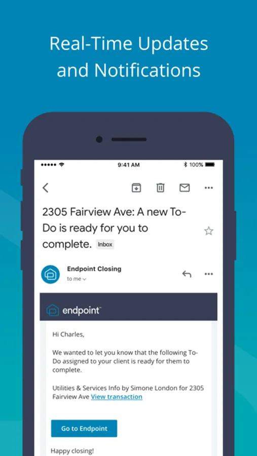 Whether you’re an agent, broker, buyer or seller, Endpoint’s mobile app allows you to stay informed and move the process forward.