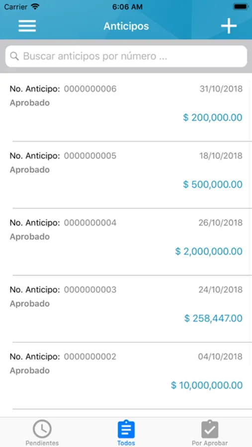 • ANTICIPOS: Por medio de este módulo puede realizar la creación de los mismos y adicionalmente es posible acceder a los anticipos y su estado actual.