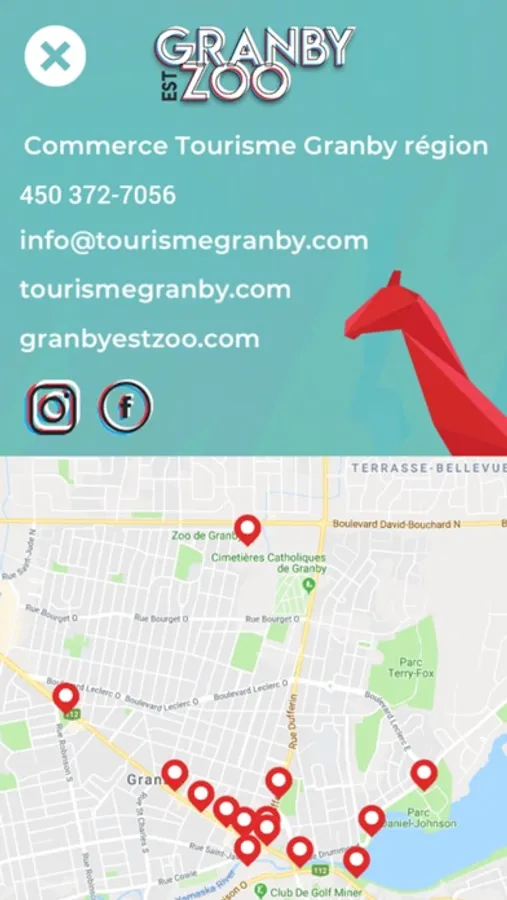 Since 2017, Granby has tasked itself with installing fun works of art representing the animals at the Zoo de Granby, the region’s main attraction and an inseparable part of the municipality. An interactive digital component that creates a surprising experience for visitors in a world where virtual animals come alive before their very eyes! Participants are invited to take their smartphones and, using an augmented reality mobile app, visit a virtual zoo right in the heart of downtown Granby. Designed jointly with the Zoo de Granby, the app also features an educational element that shares fun facts with users about the different animals revealed on-screen.
